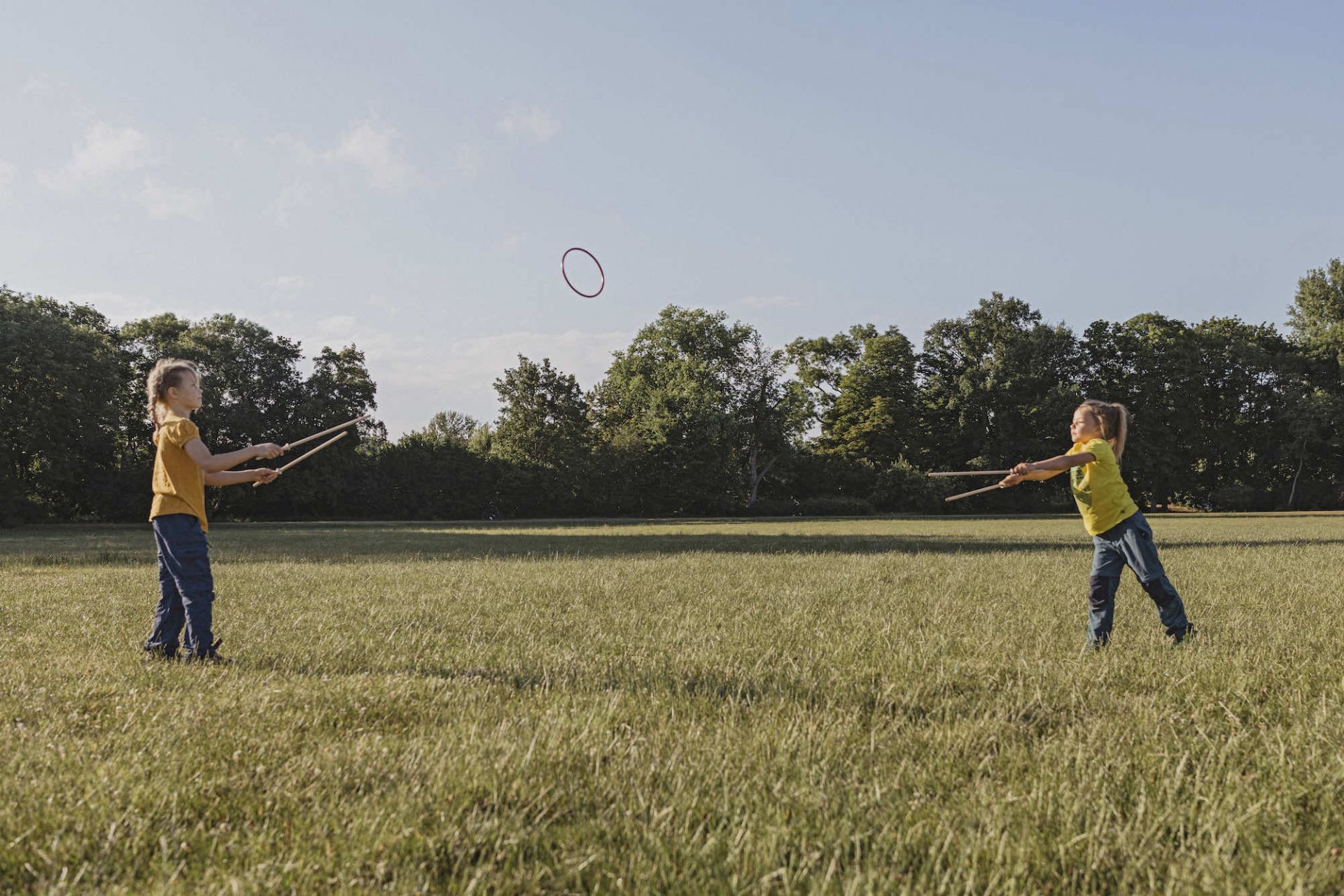 Der neue Aktiv-Trend für draußen: Mit den netzbespannten Schaumstoff-Scheiben wird der weiche Ball hin- und hergespielt. Der "Wuschel"-Ball rollt nicht weg, wenn er zu Boden fällt. Auch toll als Wurfscheibe!